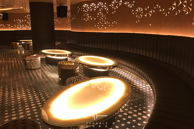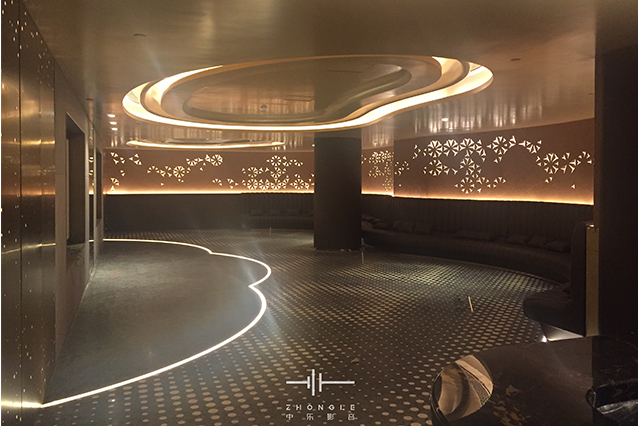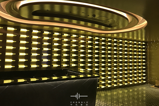 這是對卡拉OK要求極高的一個項目,面積非常大,但層高只有2.9米(完成面),天花內(nèi)部非常多梁影響造型設(shè)計。通過與專業(yè)的設(shè)計公司配合,最終給到業(yè)主滿意的設(shè)計方案。在聲學(xué)上最難處理的是減振和弧形造型的聲聚焦問題,通過中樂團(tuán)隊的精心設(shè)計和項目施工過程對每一個細(xì)小問題的處理,最終交付出非常滿意的答卷。通過這樣的高要求的項目,讓中樂團(tuán)隊的實力又一次得到升華。
